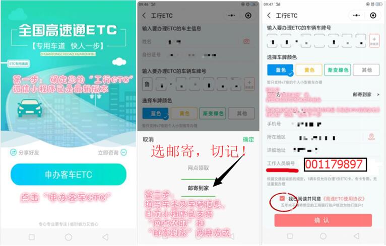 然后发送:ETC424179876+车牌号+姓名+手机号
