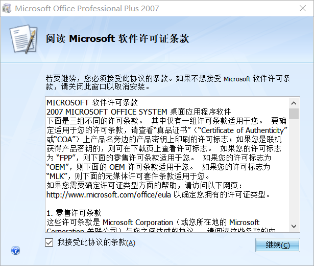 包含的组件:Word 2007、Excel 2007、PowerPoint 2007、Access 2007、Outlook 2007、Publisher 2007、InfoPath 2007
