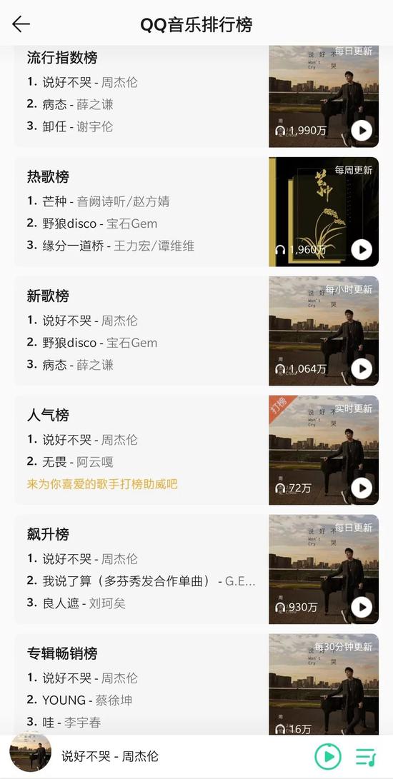 近年来周杰伦发售新歌较少,此次距上一次发新歌也已1年。