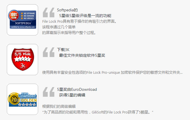 GiliSoft File Lock Pro 是一款优秀的加密工具,用它可以隐藏或加密文件、文件夹、磁盘分区,而且被加密的文件不会因为被加密(忘记密码)而丢失,可算是很安全的数据加密软件。作为一款专业的文件夹加密工具,它的软件界面比较简洁。GiliSoft File Lock Pro 是一款强大的全方位文件/文件夹保护软件,它的文件夹安全功能非常丰富,支持文件/文件夹/磁盘分区的隐藏、防止写入保护、拒绝读取保护等,而且还能支持文件/文件夹加密、彻底粉碎删除、EXE加密、文件夹操作记录监视、密码错误多次后发送邮件提醒等。