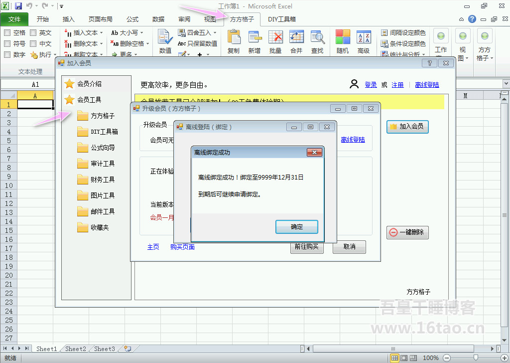 安装方方格子Excel工具箱离线包后使用注册机离线激活即可