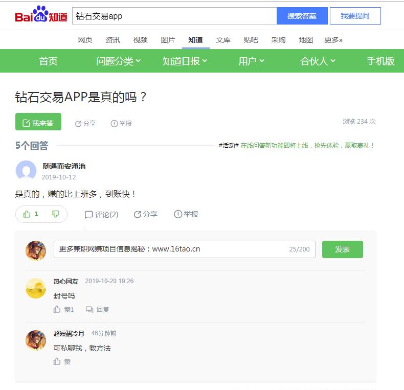 这个平台,当时是朋友介绍的,跟着他做了一段时间。自己也赚了一部分的钱(也有人短时间赚的盆满钵盈),后来,也是考虑了各种原因,自己就停止了没再做(毕竟涉及到一些不正当的东西)。钻石交易这个平台运营了有2年左右了吧,想做跑分赚钱的,先看下这篇文章:黑灰产的廉价“温床”——跑分平台(黑产揭秘、如何运作、危害等)http://www.16tao.cn/4589.html,看完之后,自己再决定做不做跑分赚钱,下面有注册方式。