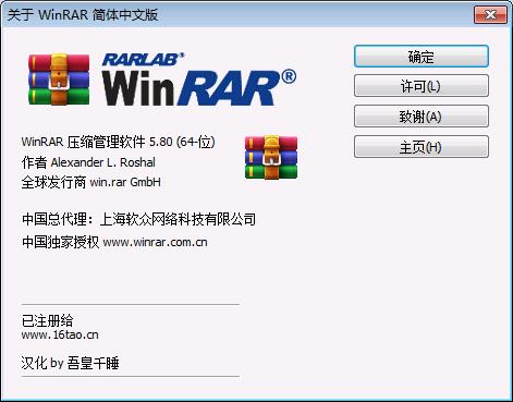 吾皇千睡分享一个WinRAR 个性签名通用注册机,单文件版本的,无毒、无广告捆绑,可以随意注册你的个性签名。