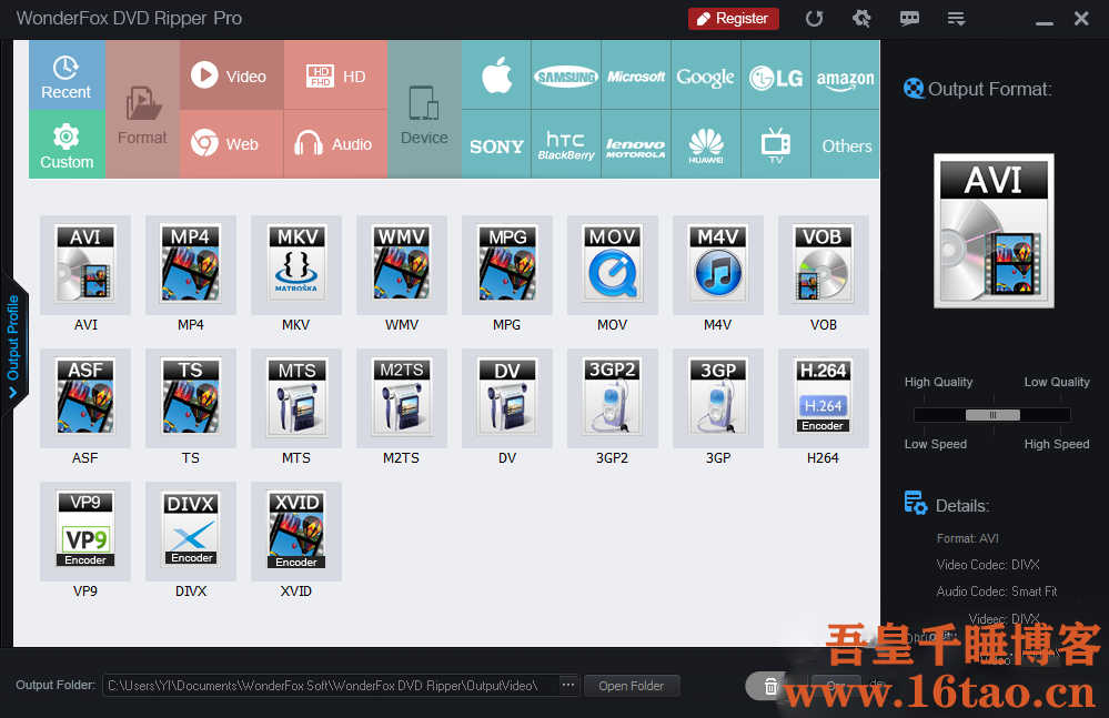 WonderFox DVD Ripper Pro 可以将DVD(7.5 GB)压缩到数字视频(1.2 GB),视频质量却没有损失。它具有最快的DVD到数字转换速度,只需要20分钟的时间,就可以将一个150分钟的DVD刻录到MP4,AVI,MKV,MOV,WMV,零质量损失。智能检测DVD电影和电视节目的主题,轻松找到正确的标题,并删除不需要的广告、预告片、视频剪辑和其他一些没用的东西。