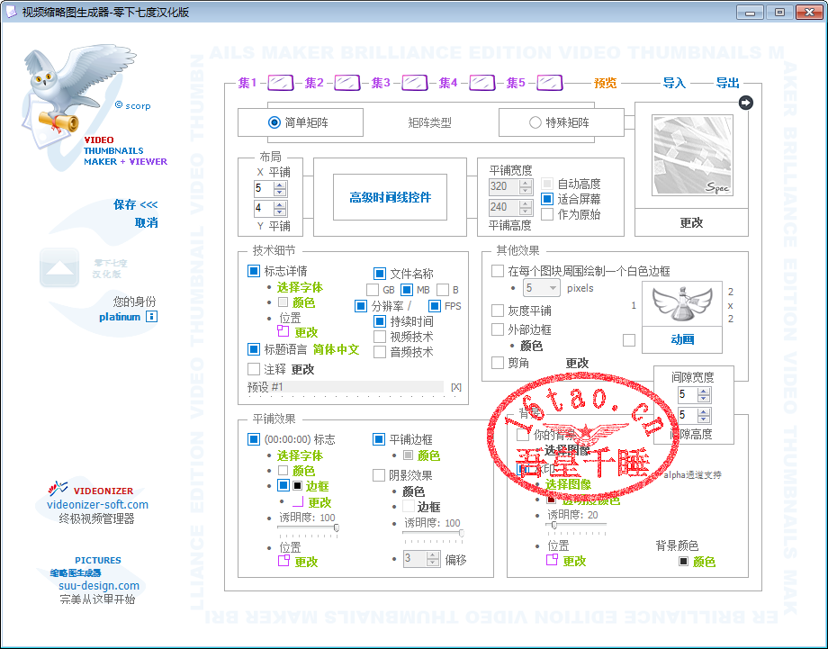 视频缩略图制作器可让您创建视频文件的缩略图(大写,预览,屏幕列表),动画和屏幕截图。该实用程序可用于家庭视频分类和网络视频共享支持。