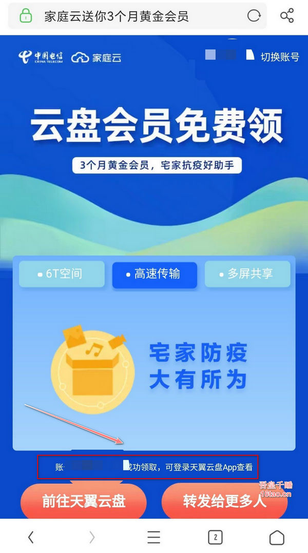 吾皇千睡16tao.cn直接送上活动连接:https://m.cloud.189.cn/zhuanti/2020/share-vip/wap.html