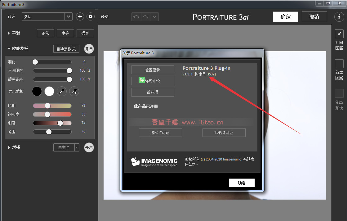 Photoshop最好的磨皮插件,人像润色滤镜插件,用于人像图片润色,减少了人工选择图像区域的重复劳动。它能智能地对图像中的皮肤材质、头发、眉毛、睫毛等部位进行平滑和减少疵点处理。