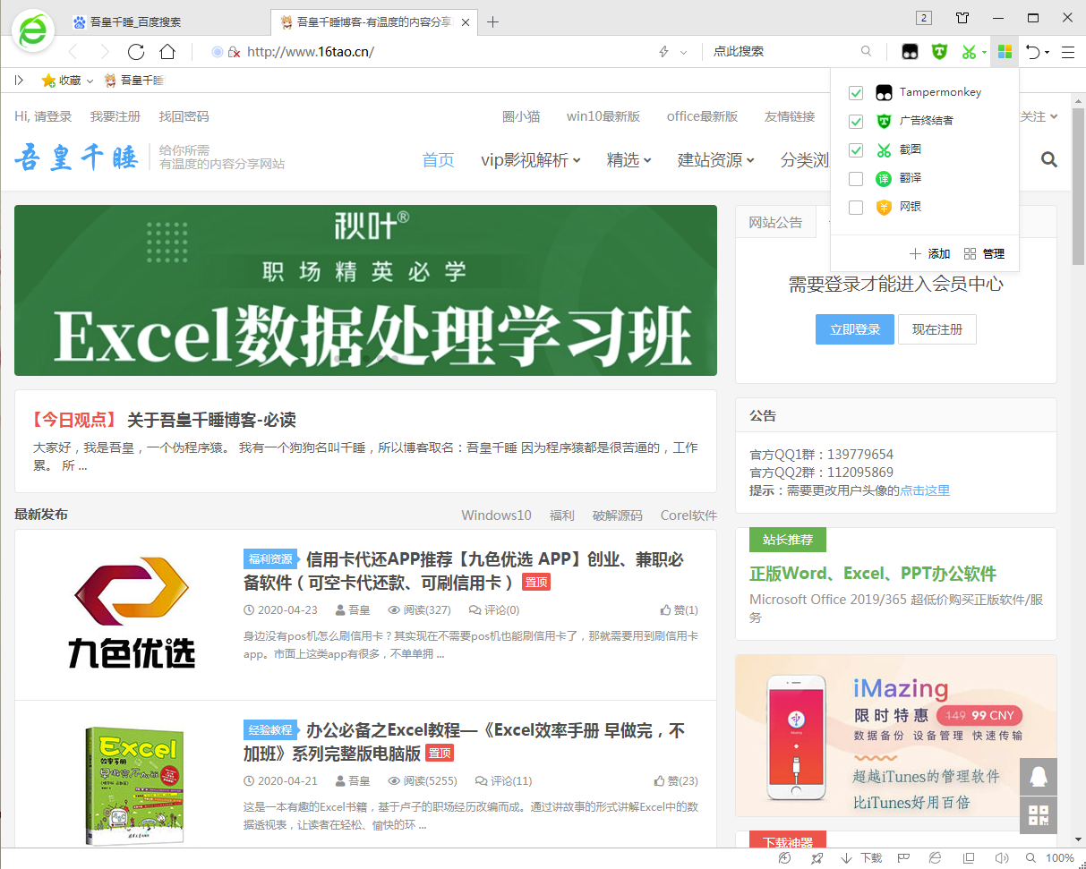 新版本的360安全浏览器,除了内核更新外,最大的特色就是过度动画了,非常流畅和美观。吾皇千睡分享的优化版本,优化内存使用,提升网页打开速度,并且提供VIP解析等插件,大家可以试试。