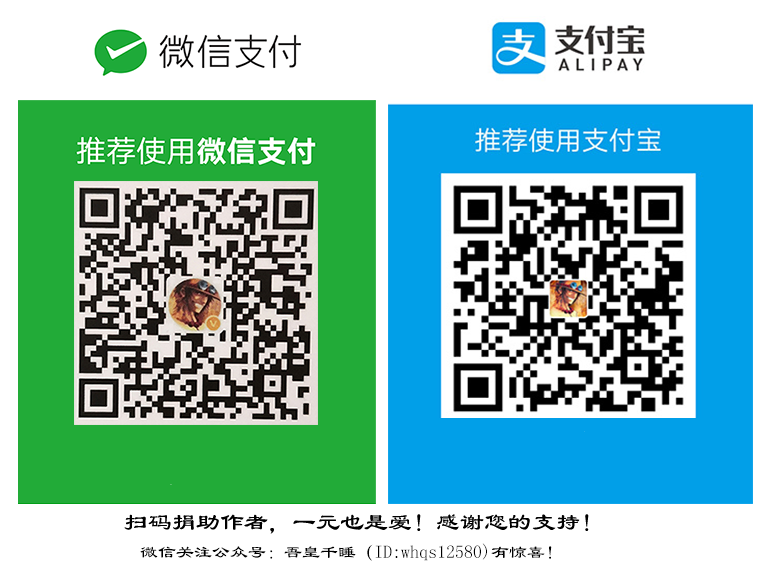 如果本站帮助您解决了一些问题,朋友您愿意打赏赞助吾皇千睡的话,可以扫描下方的二维码支持吾皇千睡网站长久发展。